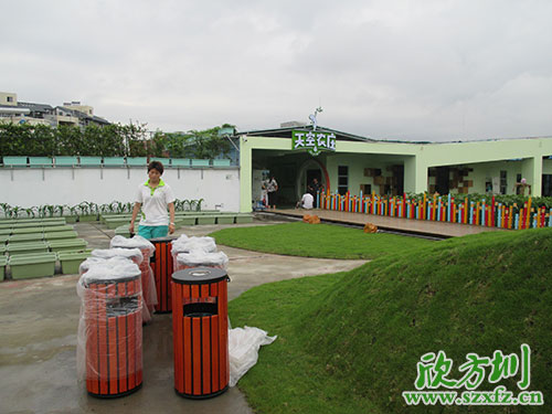 深圳天空農莊是中國首家以有機農業(yè)為主題的兒童體驗樂園,以“給孩子一個綠色的童年”為核心,以有機農業(yè)為依托,以體驗式教育理論為基礎,專為3-15歲兒童打造的多功能主題樂園!天空農莊采購部為利于環(huán)保,提升環(huán)境形象,創(chuàng)建和諧的自然環(huán)境,特意聯(lián)系我司欣方圳訂購了一批鋼木垃圾桶