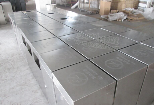 作為一家知名購物中心,采購不銹鋼垃圾桶要求極高。垃圾桶的選擇不容馬虎,兩者搭配得融入購物中心文化。我們欣方圳公司業(yè)務(wù)部人員,根據(jù)包頭茂業(yè)百貨來的圖樣,大規(guī)模的生產(chǎn)一款C60不銹鋼果皮箱。本款采購的不銹鋼果皮箱規(guī)格為:350*350*720mm,顏色為砂光。采用201#不銹鋼厚度1.2mm,其中8個帶煙灰缸,42個不帶煙灰缸,內(nèi)桶為鍍鋅板。正面蝕刻茂業(yè)百貨字樣及標識。此款不銹鋼垃圾桶頂上開門,頂上蓋子固定活動。外部光滑明亮,簡單大方的方形設(shè)計,高貴不失風度。結(jié)合包頭茂業(yè)百貨購物中心,讓更多的顧客有愉快的心情購物。