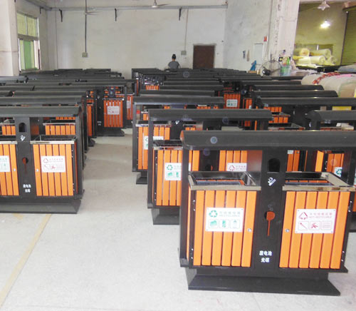 2.鋼木垃圾桶工藝:鋼木果皮箱在完成鋼材支架和實(shí)木貼裝過后,還會采用先進(jìn)噴塑技術(shù),對表面進(jìn)行防腐處理,同時還要經(jīng)歷耐高溫測試,進(jìn)一步提升鋼木果皮箱的品質(zhì).