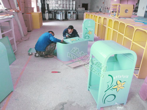 幼兒園的鍍鋅烤漆鋼制垃圾桶采用冷軋鋼材料,外框鍍鋅鋼厚度為2mm;內(nèi)膽鍍鋅鐵皮厚0.5mm; 外桶L550*W550*540*H1030MM;新做滴鍍鋅烤漆垃圾桶,搖蓋式雙面投遞,上面絲印工藝的印花保持3到4年。還絲印有不可回收垃圾,英文 字母及環(huán)保標(biāo)志等。五年以上的熟練老員工,經(jīng)剪鈑下料、折彎、沖壓、焊接、打磨、等工藝:表面經(jīng)過(guò)除油、噴砂防銹處理后,再進(jìn)行酸洗磷化處理;表面清理干燥后整體進(jìn)行靜電噴涂或烤漆處理,靜電噴涂是經(jīng)過(guò)流水線高溫固化爐固化后再出爐冷卻,加工后的塑粉附著力強(qiáng),不易剝落。