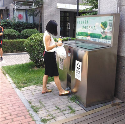 今年初,北京市開(kāi)始推廣智能垃圾分類回收箱,能自動(dòng)掃描二維碼并開(kāi)啟相應(yīng)垃圾箱,如廚余或者其他垃圾。