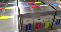 這是欣方圳為中山港資企業(yè)生產(chǎn)的不銹鋼三分類垃圾箱,首選被吸引眼球的是這紅黃藍三色貼紙,內(nèi)容為英文字母,清晰醒目,還怕垃圾分類投放不精準(zhǔn)嗎?國家大力推行垃圾分...