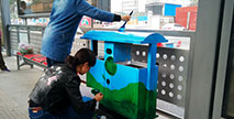 藍(lán)天白云清新美麗,可愛卡通天真童趣。鄭州快速公交站臺(tái)內(nèi)兩個(gè)原本普普通通的環(huán)保果皮箱,經(jīng)過一番裝扮與改造,成為了兩個(gè)別具藝術(shù)氣息的環(huán)保果皮箱。這兩個(gè)環(huán)保...