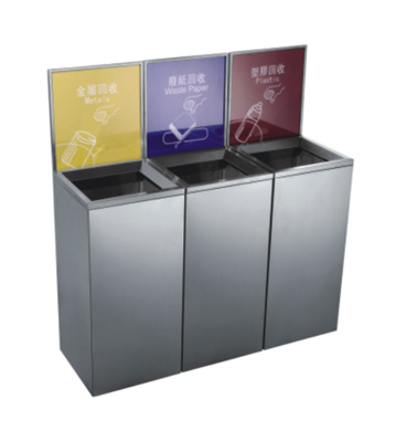 深圳新標(biāo)準(zhǔn)城中村街道社區(qū)不銹鋼五分類(lèi)垃圾桶由有害垃圾、玻璃、金塑紙(為金屬、塑料、紙張的簡(jiǎn)稱(chēng))、廚余垃圾、其他垃圾這5分類(lèi)不銹鋼垃圾桶組合而成。其中金塑紙、其他垃圾日常產(chǎn)生量較大,所以分類(lèi)收集容器也