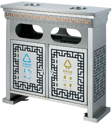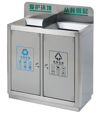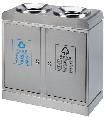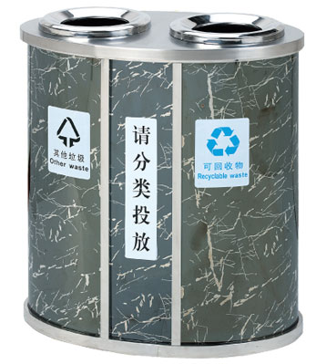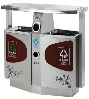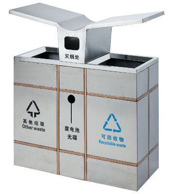 深圳新標(biāo)準(zhǔn)城中村街道社區(qū)不銹鋼五分類垃圾桶由有害垃圾、玻璃、金塑紙(為金屬、塑料、紙張的簡稱)、廚余垃圾、其他垃圾這5分類不銹鋼垃圾桶組合而成。其中金塑紙、其他垃圾日常產(chǎn)生量較大,所以分類收集容器也