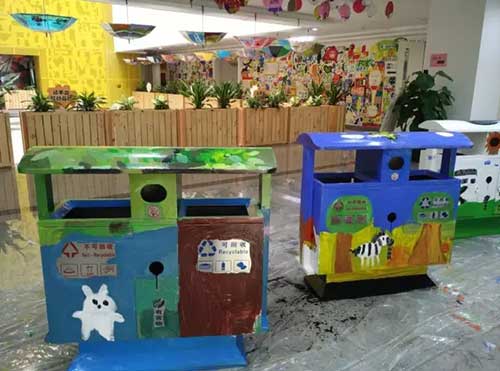 2月28日,繪本班的孩子們在美術部曾老師的帶領下,開展了“美化環(huán)境,裝點新宮”的繪畫活動,原本被置放在青宮各個角落的垃圾桶一天之間舊貌換新顏,搖身變成了一件件美麗可愛的藝術品!