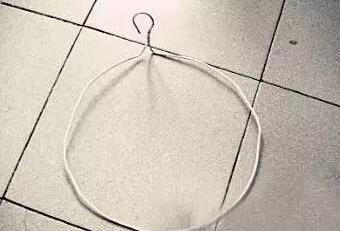 2、如圖,用鉗子將兩個(gè)衣架分別彎成一個(gè)圓形的架,再將衣架的掛鉤朝外扭一下,使其與圓面成直角。