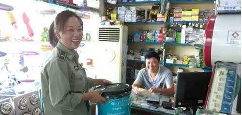 為商戶配發(fā)垃圾桶,倡導(dǎo)文明經(jīng)營