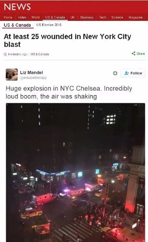 爆炸發(fā)生后,數(shù)百人已經(jīng)撤離現(xiàn)場,紐約警方已經(jīng)建議來往車輛和人群繞行該地區(qū),警方也對(duì)該區(qū)的其他垃圾箱進(jìn)行檢查,以防仍有炸彈。