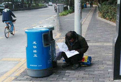 勵(lì)志!拾荒男子垃圾桶旁刻苦學(xué)習(xí)