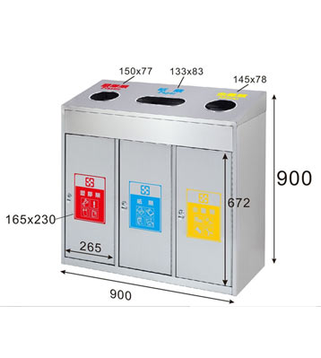 • 產(chǎn)品材質(zhì):三分類(lèi)不銹鋼垃圾桶采用201#,202#,304#優(yōu)質(zhì)不銹鋼材料模壓成型,堅(jiān)固耐用,不易破損;耐火安全,抗高低溫,適合各種惡劣氣候條件;金屬亮澤,高雅美觀,廣泛適用于各種場(chǎng)所;內(nèi)外表面光潔,減少垃圾殘留,易于清潔;配置鍍鋅板內(nèi)桶,便于垃圾清倒;