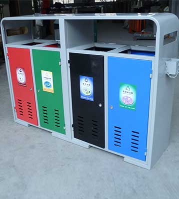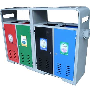 欣方圳鋼制戶外四分類垃圾桶產(chǎn)品一律用室外粉靜電噴塑,經(jīng)過(guò)180°的高溫