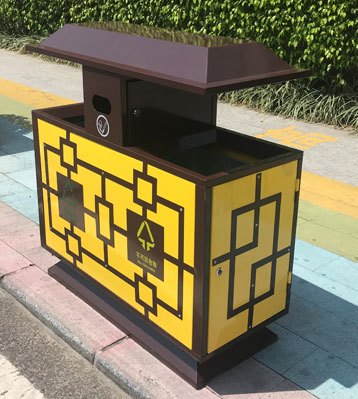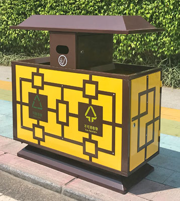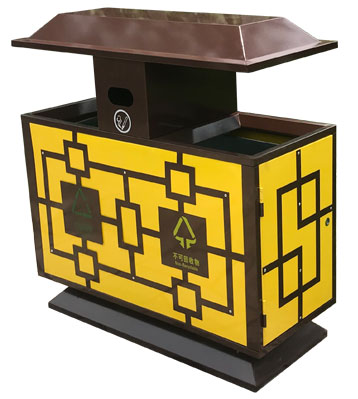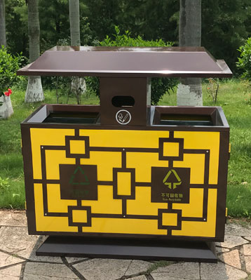 欣方圳戶外仿古典風分類垃圾箱細節(jié)展示