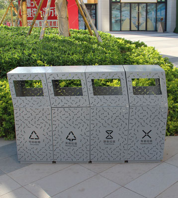 深圳景區(qū)不銹鋼鏤空垃圾桶幾何藝術(shù)切面造型,采用5mm加厚316#不銹鋼材質(zhì)而成,單個(gè)可組成室內(nèi)外二、三、四分類垃圾桶。分類標(biāo)識(shí)蝕刻后填漆,不...