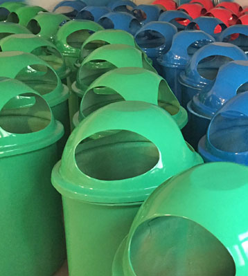 多投口玻璃鋼圓形垃圾桶桶身和內(nèi)膽部分,采用高級(jí)玻璃鋼材質(zhì)一次成型,經(jīng)過(guò)打磨、除塵 、噴漆等一系列后期工藝然后出成品。