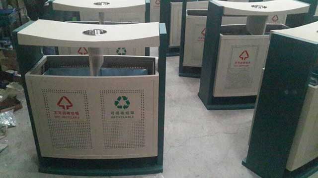 F139戶外鋼板四分類(lèi)垃圾桶